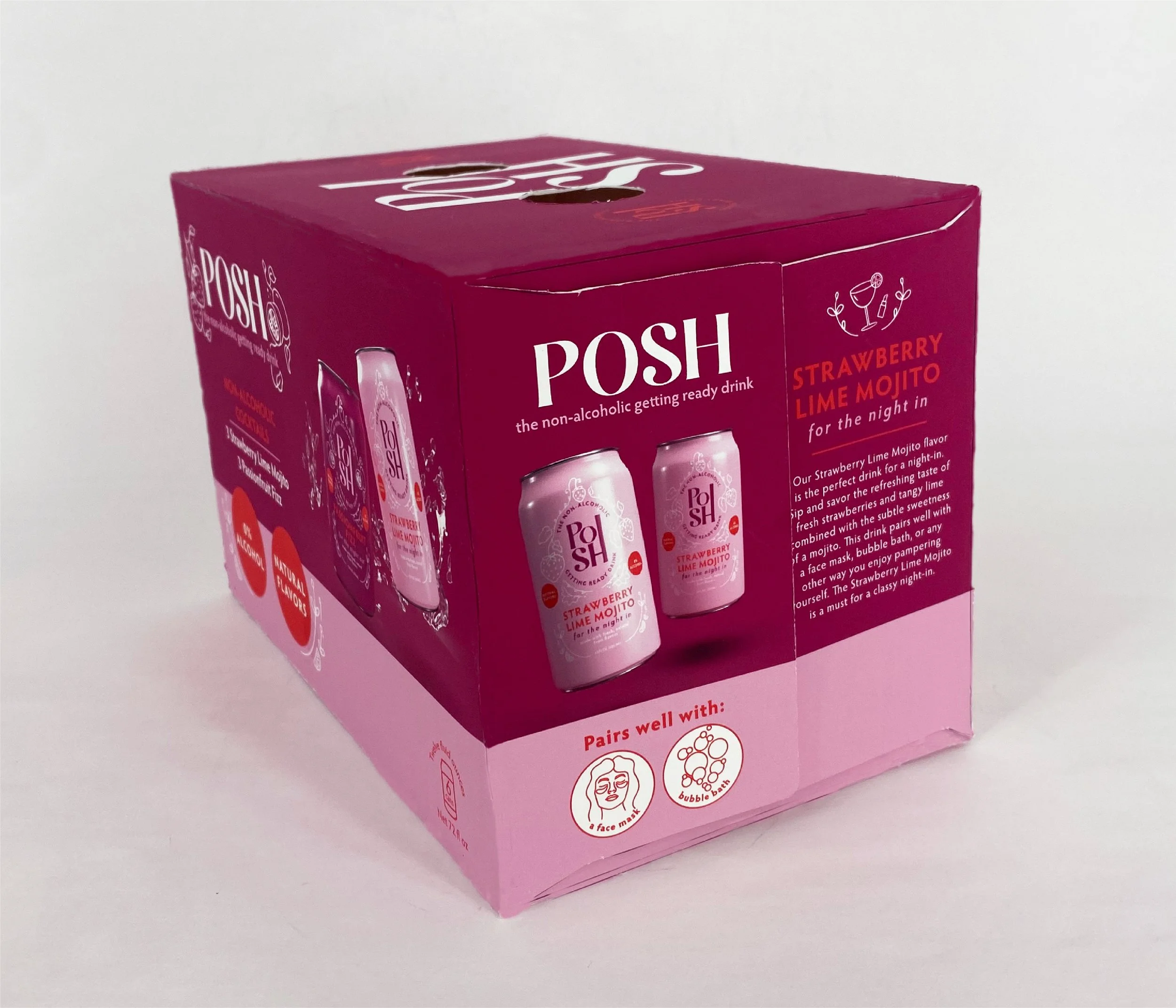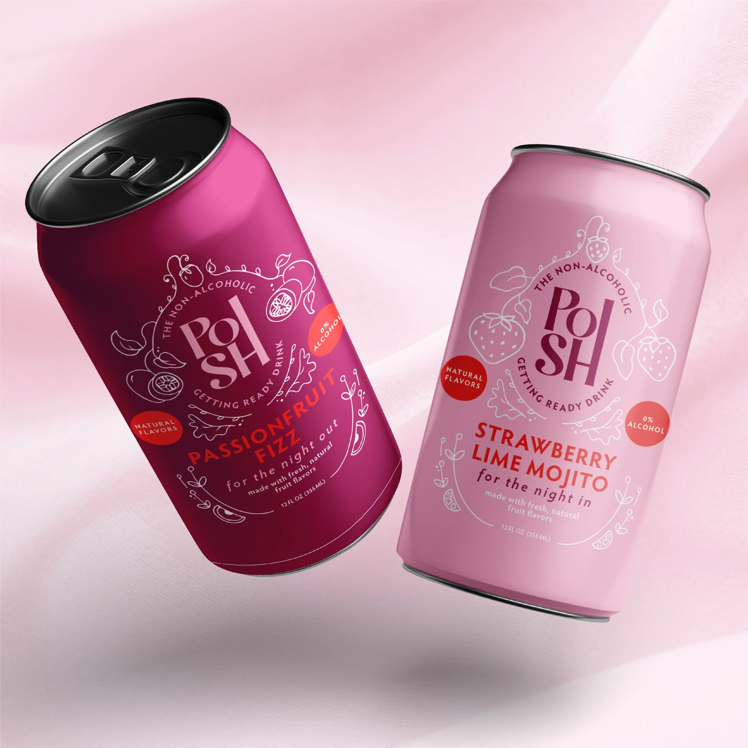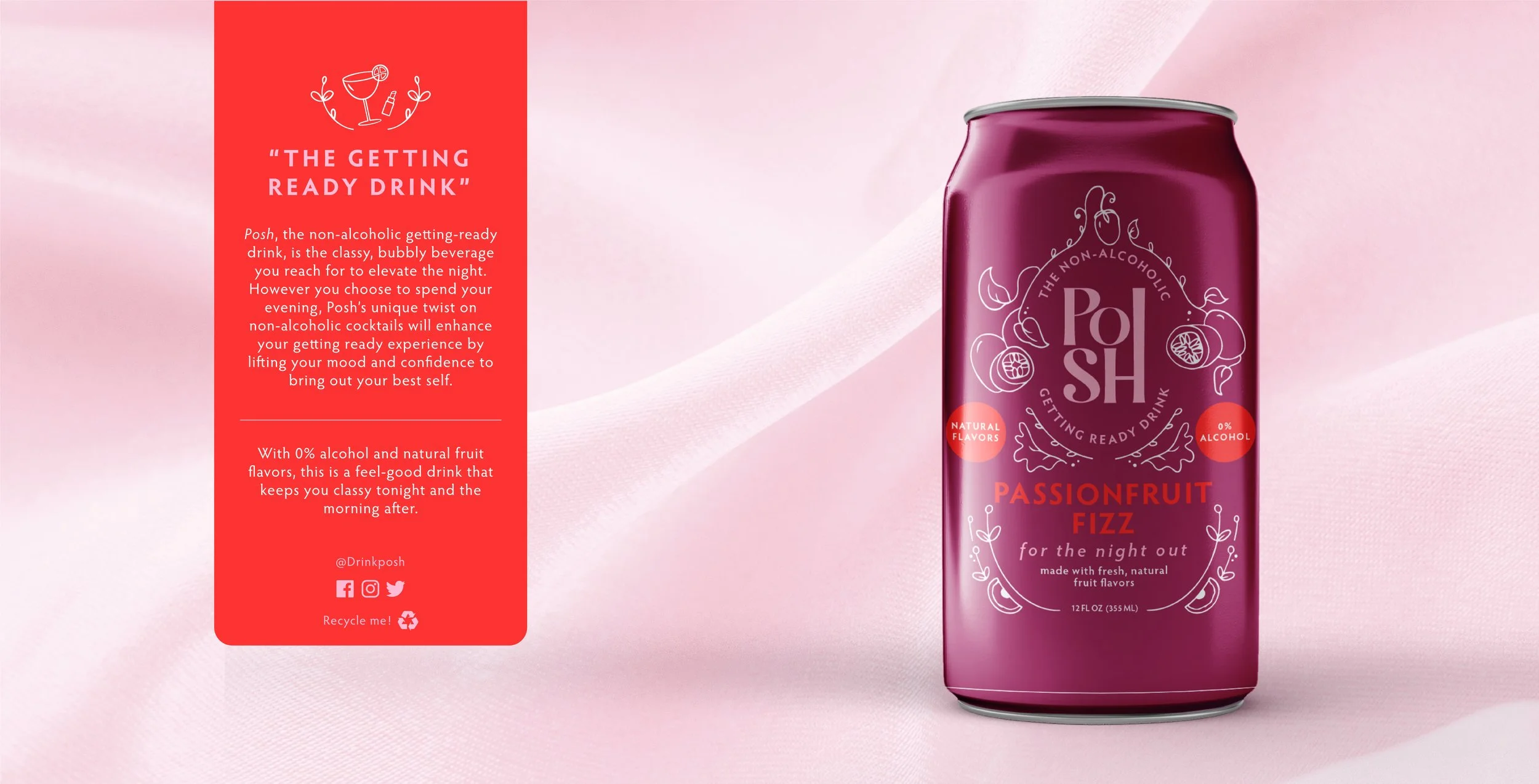 The word posh means elegant and stylishly luxurious—and these drinks embody that spirit. While the strawberry lime mojito is perfect for a relaxing night in, the passionfruit fizz gives you the touch of boldness you need for a night out on the town. Posh’s branding is fun and flirty while still remaining refined and elegant.